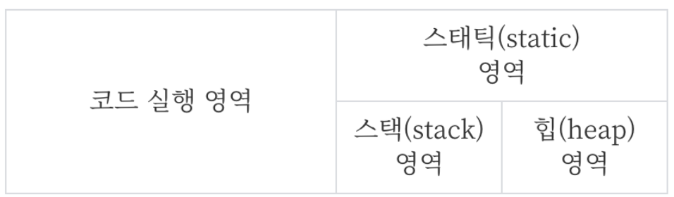 자바 프로그램이 메모리를 사용할 때는 코드 영역과 데이터 저장 영역으로 나눈다.
