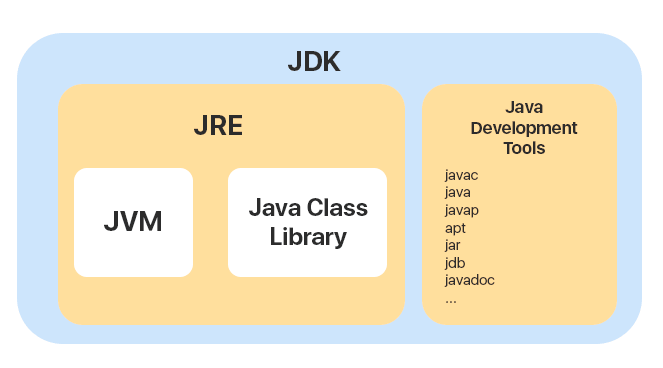 - JDK에는 개발, 디버깅 등을 위한 도구가 포함되어 있습니다.