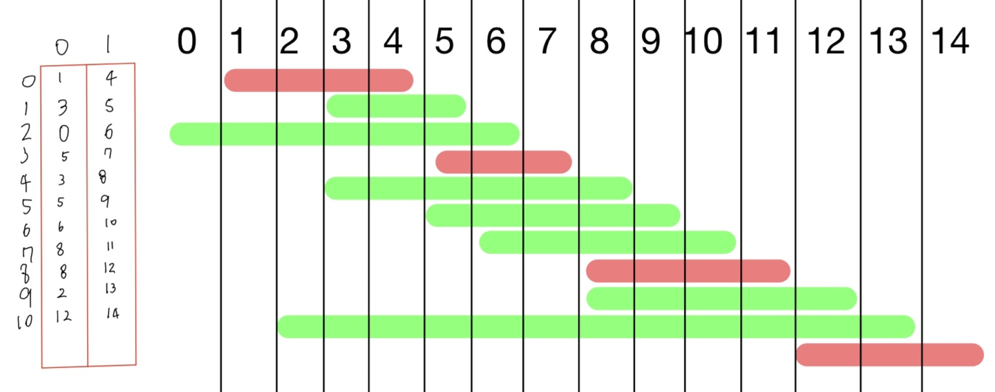 (1,4), (5,7), (8,11), (12,14) 를 이용할 수 있다.