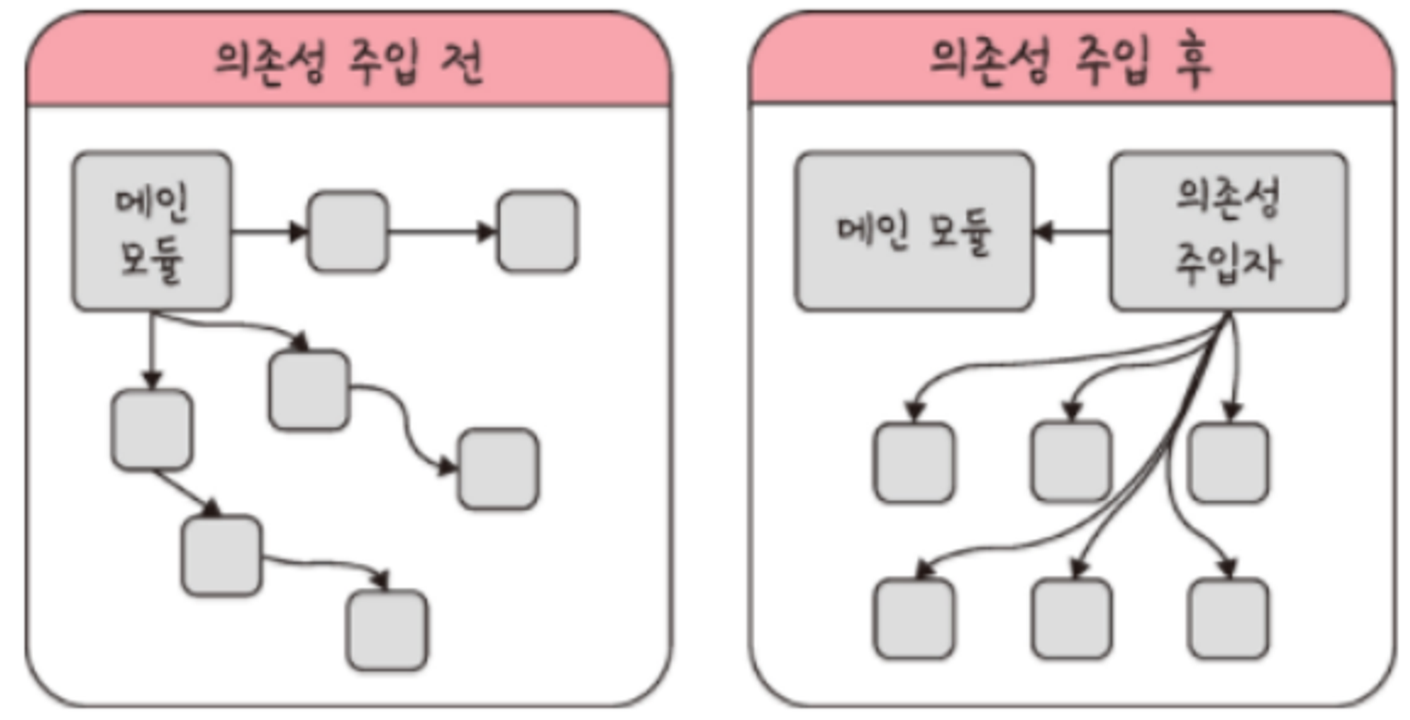 ● 의존성을 외부에서 주입하는 방식이 바로 Dependency Injection입니다.