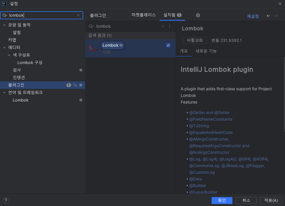 Lombok 플러그인 추가